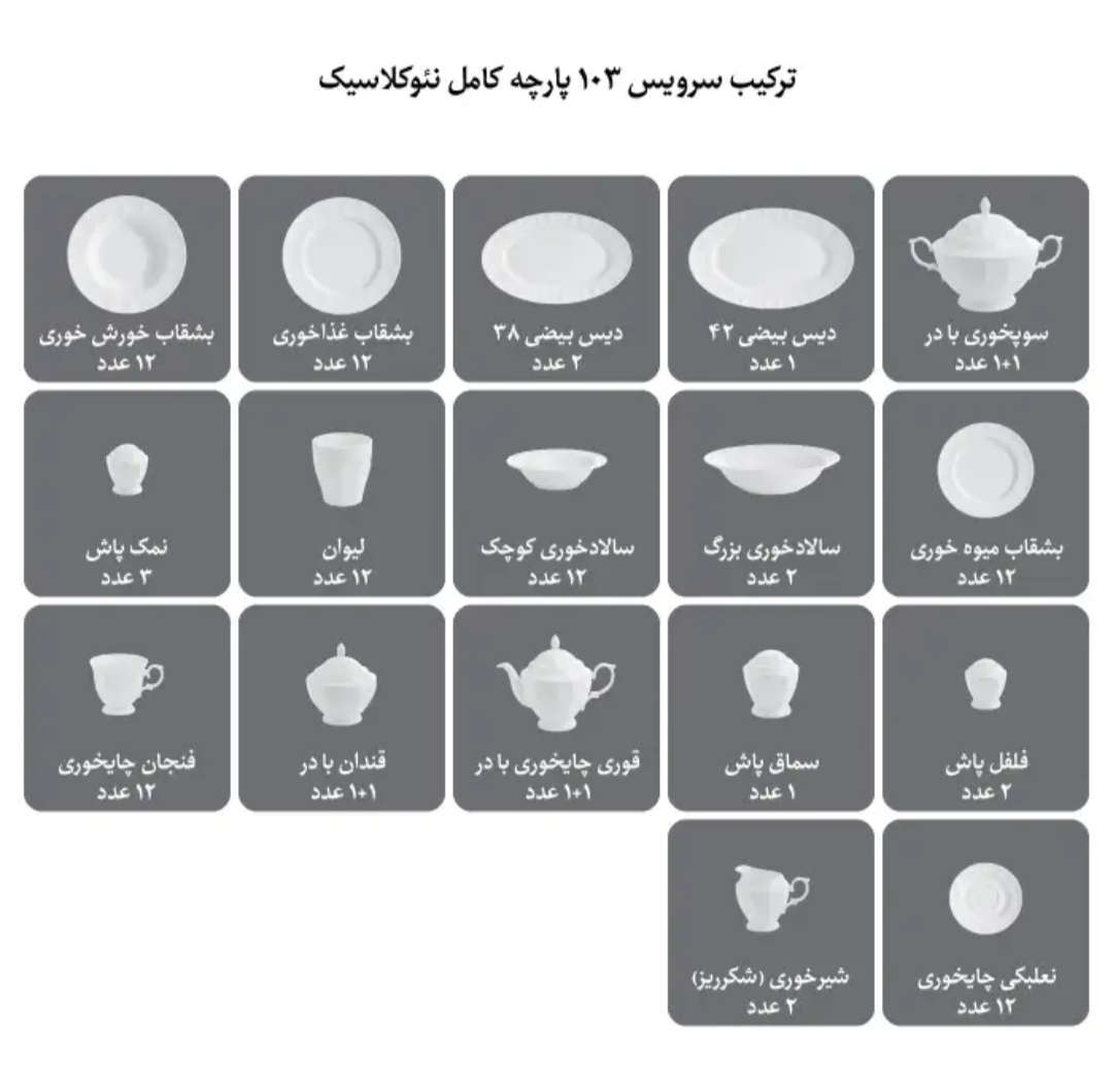 آشپزخانهتان را با چینی زرین طرح فلورنتینا زینت بخشید! این سرویس زیبا با طرحی مدرن و کیفیتی بینظیر، انتخابی ایدهآل برای مهمانیهای لوکس و روزمره شماست. با مقاومت بالا در برابر خط و خش و قابلیت شستشو در ماشین ظرفشویی، فلورنتینا تجربهای نوین از ظرافت و کارآیی را به ارمغان میآورد. همین حالا سفارش دهید و میز خود را درخشان کنید!