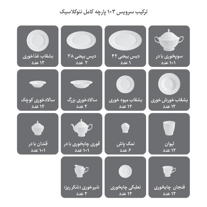 با چینی زرین طرح گلاریس، زیبایی و اصالت را به میز غذای خود بیاورید! این سرویس چینی نفیس با طراحی چشمنواز گلاریس، به هر میز و مهمانی جلال و شکوهی بینظیر میبخشد. جنس باکیفیت و مقاوم در برابر خط و خش، انتخابی ایدهآل برای هر خانهای. هماکنون خرید کنید و تجربهای متفاوت از پذیرایی داشته باشید!
