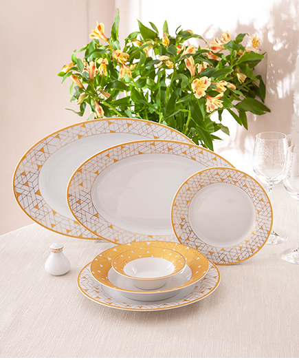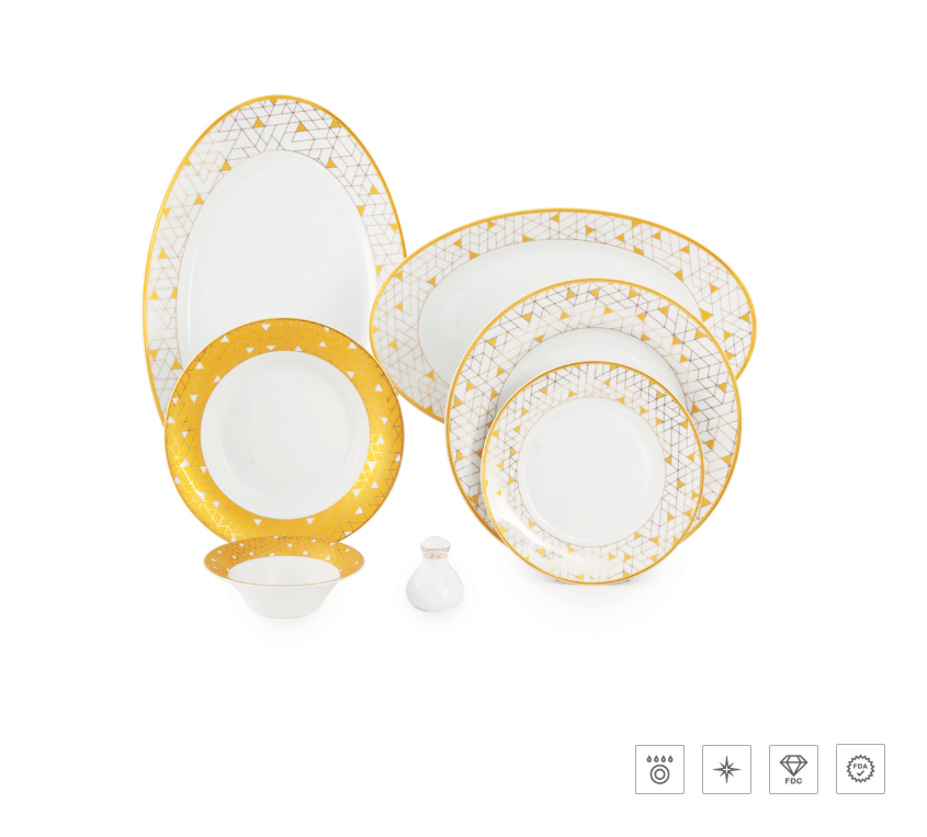 با چینی زرین طرح ژئومتریکال، به میز غذاهای خود جلوهای متفاوت ببخشید. این سرویس با طراحی مدرن و الگوهای هندسی زیبا، ترکیبی از کیفیت بینظیر و خلاقیت هنری است. مناسب برای مهمانیها و استفاده روزمره، با دوام بالا و قابلیت شستشو در ماشین ظرفشویی. اکنون خرید کنید و به زیبایی خانهتان افزوده و میزبانی بیعیب و نقصی را تجربه کنید!