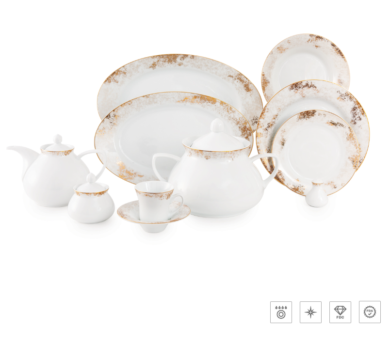با سرویس چینی زرین طرح کلودیا، زیبایی و ظرافت را به میز غذاخوری خود بیاورید. این سرویس با طراحی کلاسیک و کیفیتی بینظیر، انتخابی ایدهآل برای مهمانیهای خاص و استفاده روزمره است. با دوام و شستشوی آسان، آرامش و راحتی را به خانهتان هدیه دهید. تجربهای لوکس و فراموشنشدنی!