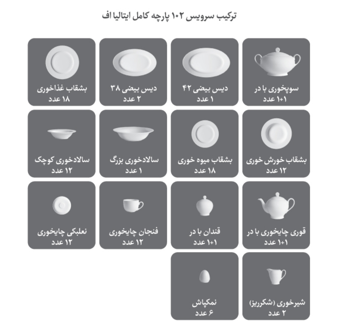 با چینی زرین طرح سفید صدف، زیبایی و ظرافت را به میزهای خود بیاورید. این سرویس با طراحی کلاسیک و رنگ سفید براق، انتخابی عالی برای هر میز پذیرایی است. مقاومت بالا، کیفیت برتر و طراحی شیک، این محصول را به گزینهای ایدهآل برای مهمانیها و استفاده روزمره تبدیل کرده است. حالا خرید کنید و لمس کنید!